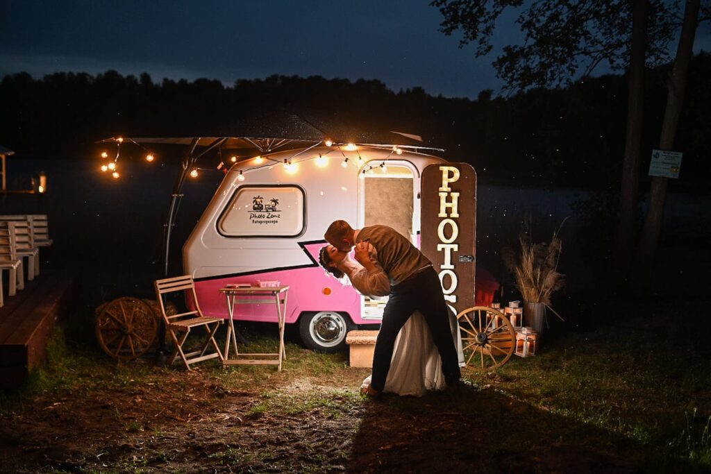 Fotoprzyczepa doskonale sprawdzi się w różnych lokalizacjach – możesz ją ustawić tuż przy sali weselnej, w ogrodzie, a czasem nawet pod zadaszeniem. Może pełnić rolę nie tylko wyjątkowego punktu fotograficznego, ale także strefy relaksu. Niezależnie od miejsca, fotoprzyczepa wnosi wyjątkowy klimat, który zachwyci Twoich gości.
